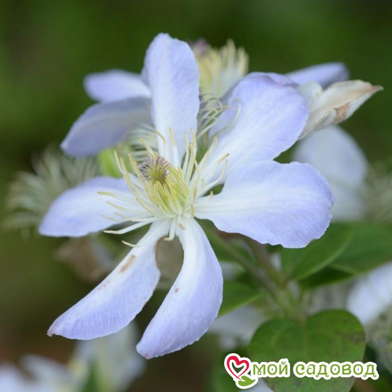 Цветки у сорта крупные, диаметром 4 – 7 см. Состоят они из 4 – 6 чашелистиков, направленных вверх. Окрашены лепестки в фиолетово-голубой цвет. Форма эллиптическая. Края немного волнистые. По центру каждого лепестка проходит зеленовато-белая полоска. Также есть более контрастные прожилки.