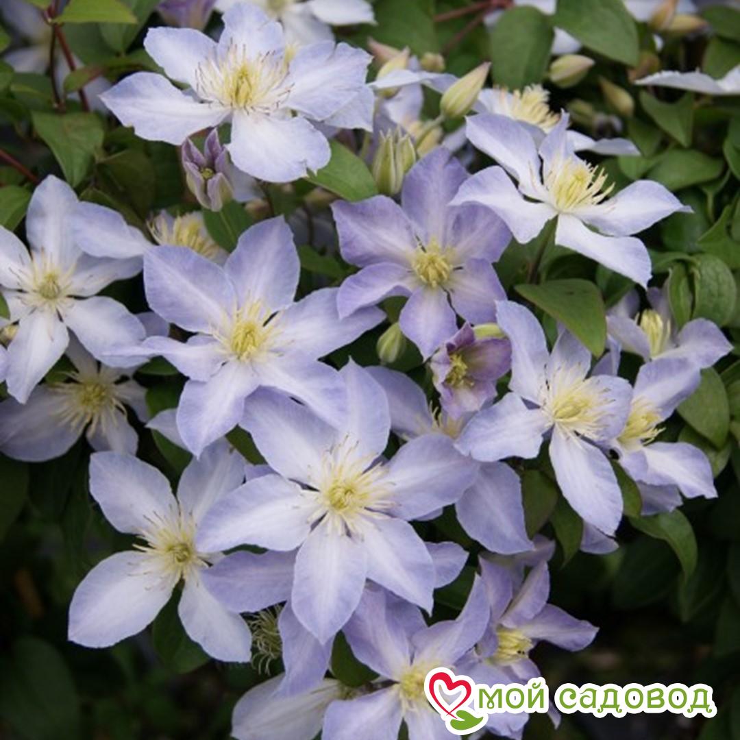 Этот сорт выведен в Голландии. В 2011 году он награжден медалью на выставке «Plantarium». Растение заслуживает особого внимания, поскольку идеально вписывается в любой ландшафтный дизайн. Купить недорого качественный посадочный материал можно в нашем интернет-магазине. Как выглядит растение? Цветки у сорта крупные, диаметром 4 – 7 см. Состоят они из 4 – 6 чашелистиков, направленных вверх. Окрашены лепестки в фиолетово-голубой цвет. Форма эллиптическая. Края немного волнистые. По центру каждого лепестка проходит зеленовато-белая полоска. Также есть более контрастные прожилки. Применение в ландшафтном дизайне Сорт активно выращивается у разных садовых опор – решеток, арок, сеток и т.д. Не менее эффектно он смотрится между невысокими кустарниками и вечнозелеными хвойниками. Цветущее растение наполняет сад потрясающим ароматом. Советы по посадке и выращиванию К посадке сорта приступают осенью или весной. Участок должен быть солнечным, без сквозняков. Алгоритм работ следующий: сначала выкапывают лунки глубиной до 10 см; внутрь насыпают дренаж из битых кирпичей; сверху добавляют дерновый грунт, речной песок, торф и перегной; корни растения аккуратно расправляют и засыпают плодородной почвосмесью; растение обильно поливают; прикорневую зону укрывают мульчей. Важно позаботится об опоре для лианы, по которой она будет плестись. Что касается полива, то его проводят 1 раз в неделю. Воду используют нагретую на солнце (дождевую или отстоянную). Из подкормок используют органику и минеральные удобрения. Вносят их не менее 4 раз за сезон. Положительные качества клематиса Бейби Долл У рассматриваемого сорта несколько значимых качеств: пышное цветение; универсальность в применении; выносливость; тонкий аромат; отменные декоративные качества; хорошая холодоустойчивость; доступная цена. Купить недорого клематисы можно в интернет-магазине «Мой садовод». Просто отправьте понравившийся сорт в корзину, нажав на соответствующую кнопку. Мы бережно упакуем и максимально быстро доставим Вашу покупку ТК СДЭК или почтой России. Если возникнут вопросы или сложности с оформлением заказа, наши консультанты предоставят квалифицированную помощь. Мы гарантируем высокое качество посадочного материала и дорожим мнением каждого покупателя!