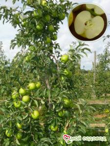 Исключительно качественный сорт. Один из самых популярных у европейских садоводов. В Польше занимает второе место. Дерево слаборослое, на подвое мм-106 достигает  четырех метров в высоту.  В плодоношение вступает с третьего года. В шестилетнем  возрасте дает  до 25 кг  яблок.  Плоды весом 160-190 гр., одномерные, округло овальные, зеленовато-желтые, с оранжево-красным размытым румянцем. Шкурка тоненькая, плотная, эластичная, сухая. Мякоть светло-кремовая, средней плотности, очень сочные,  кисло-сладкого вкуса. В нашем интернет-магазине вы сможете купить Саженцы яблони Так же возможно вас заинтересуют Яблоня Фуджи и Яблоня Гала Маст .